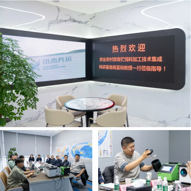 今年1月,农业农村部青贮饲草料加工技术集成科研基地核心专家、中国农业大学杨富裕教授一行曾到访迅杰光远,双方围绕青贮玉米、苜蓿干草、虫粉等领域开展近红外检测建模合作,为后续共建基地奠定了良好基础。